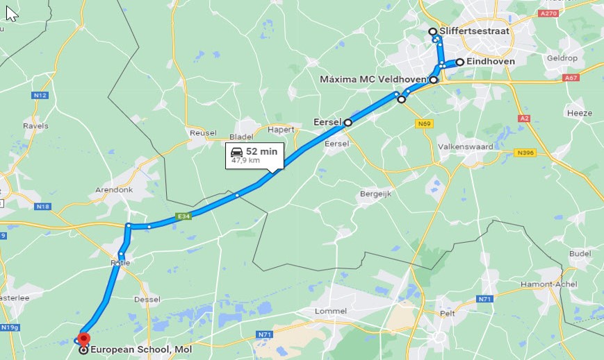 | Retie | Europalaan, bus stop ‘Oude Arendonksebaan’ | 7:50 | 16:45 | 13:05 |